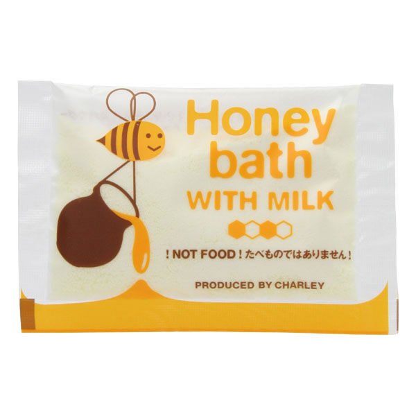 パッケージがとってもかわいい♪ 粉末はちみつとミルクをブレンドしたナチュラルなバスパウダーです。 香料、保存料などは一切使用していませんので、香りはほとんどありません。 湯色も少し白くにごる程度です。 |