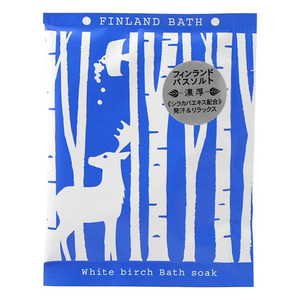 | 美しくきびしい冬、爽やかな汗ふりしぼる夏。 いずれにも濃厚なフィンランドバス。 [ホワイトバーチ] 北欧の森を想わせる爽やかな白樺の香り 無機塩類をベースにシラカバ樹皮エキス、ホホバオイルなどの保湿成分を加えた入浴料です。 発泡粉末入りなので、入浴はじめの数分間はプツプツとした気泡湯が楽しめます。 ミルキーホワイトのお湯。 白樺は別名森の看護婦さんと呼ばれています。 成長に伴い自らが森の肥やしとなり新芽の成長を助ける献身的な成長力を持った樹木だからです。 北欧ではミネラル、糖分、カリウムを補うために古くから飲用する風習があります。 |
