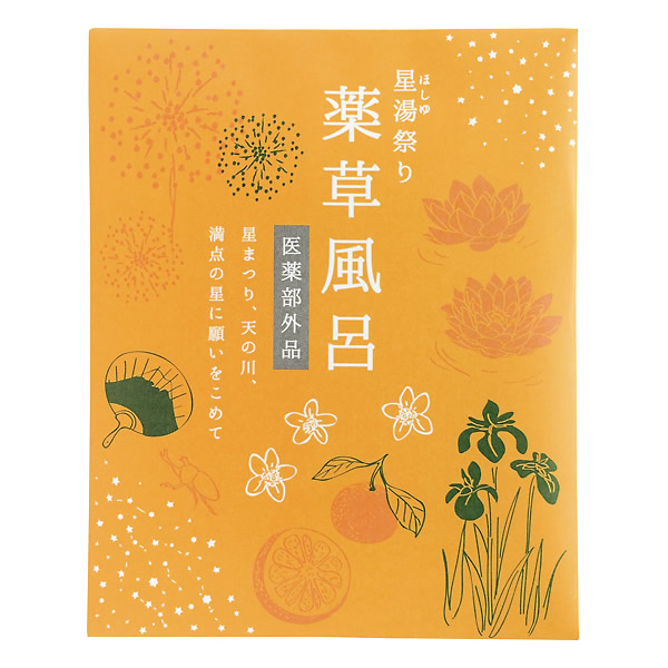 | ショウブの生薬配合(ショウブの香り) 生薬が温浴効果を高める事により、体をよく温め発汗を促します。 また、あせもや背中のにきびに効果的です。 [効果・効能] 冷え症、痔、肩のこり、腰痛、神経痛、荒れ性、しもやけ、あせも、疲労回復、うちみ、くじき、しっしん、ひび、あかぎれ、にきび [星祭りとは?] 七夕は星祭りとも言います。 古来、日本に伝わる棚機(タナバタ)にはお盆の前にけがれを洗い清める神事があり、 日本各地で今でも無病息災の祈願が行われています。 『星湯祭り 薬草風呂』に入って無病息災を祈願しましょう。 |