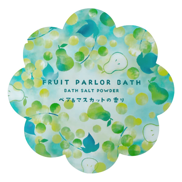 | 可愛いお花型が特徴のバスパウダー。 フルーツのさわやかな香りがバスルームいっぱいに広がります。 うるおい成分ハチミツ配合。 [ペア&マスカット] クリアグリーンの湯色 |