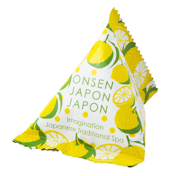 | オンセンジャポンのフルーツシリーズ。 テトラ型のパウダー入浴剤です。 [効能] 疲労回復、神経痛、腰痛、冷え症、肩のこり [ゆず] 透き通った黄柚子色の湯 |