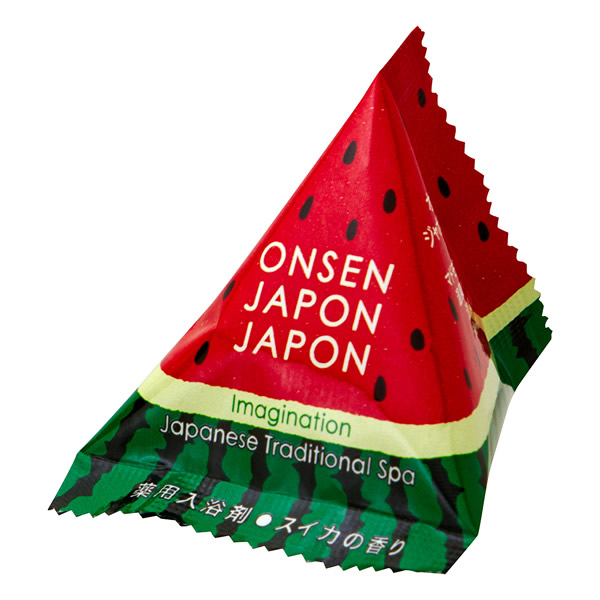 | オンセンジャポンのフルーツシリーズ。 テトラ型のパウダー入浴剤です。 [効能] 疲労回復、神経痛、腰痛、冷え症、肩のこり [スイカ] クリアレッドの湯 |