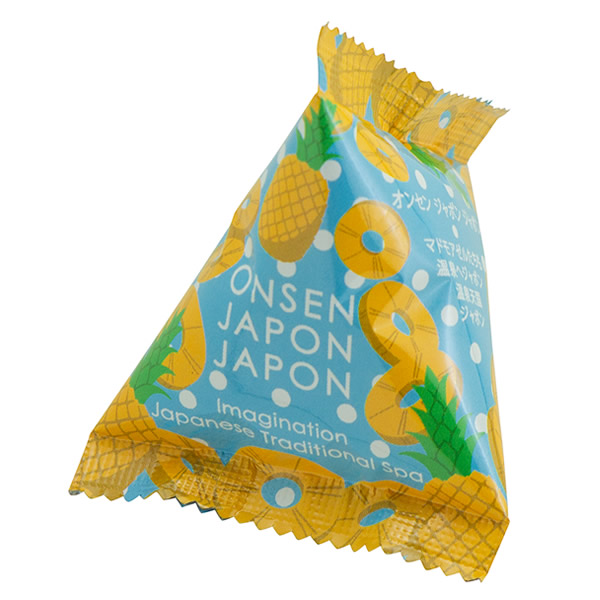 | オンセンジャポンのフルーツシリーズ。 テトラ型のパウダー入浴剤です。 [効能] 疲労回復、神経痛、腰痛、冷え症、肩のこり [パイナップル] クリアイエローの湯色 |