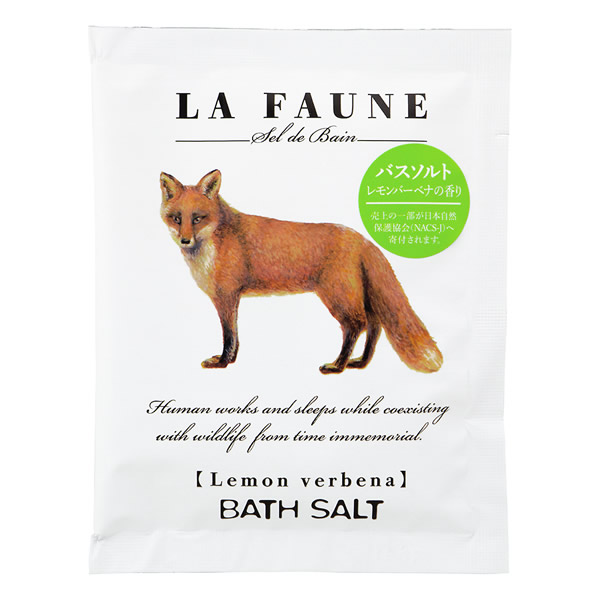 | 山に自生する植物のエキスや香りをイメージしたバスソルト [キツネ(レモンバーベナの香り)] 保湿成分:レモングラス油、ゲッケイジュ葉エキス配合 湯色:クリアグリーン |