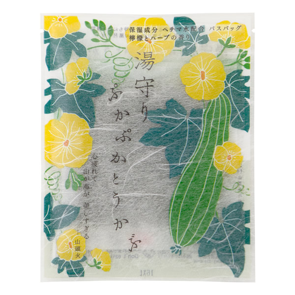 | 誰にでもきっとある こんな気持ちになる瞬間 あなたにそっと寄り添う お風呂の友 古くから日本で親しまれてきた天然由来の植物エキスを配合しました。 パッケージには種田山頭火の俳句と湯守りのつぶやき入り。 種田山頭火 : 戦前日本における自由律俳句の俳人の一人 湯守りとは・・・ 温泉を守る管理人のこと。江戸時代に与えられた地位であり、 温泉を熟知し、適正な温度や湯量に調整してくれる。 [ぷかぷかとうかぶ(檸檬とハーブの香り)] 若葉色の湯 保湿成分:ヘチマ水配合 |