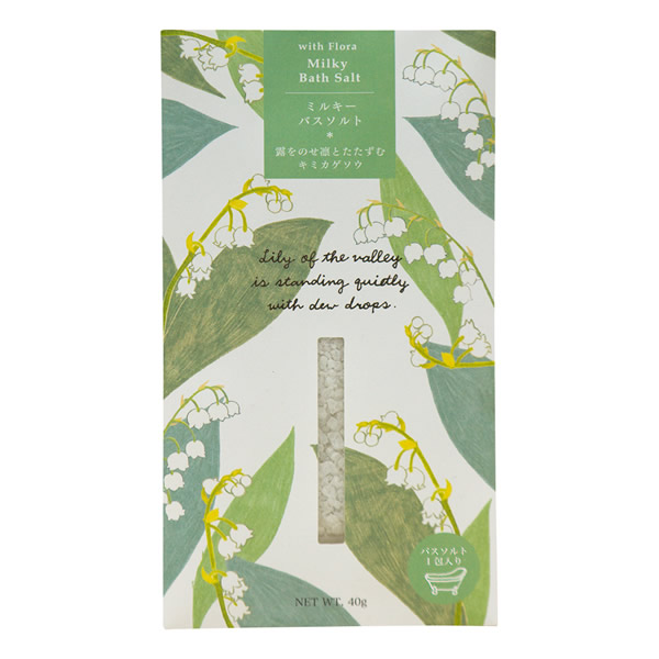 | ふとした瞬間に、どこからか漂ってくる花の香り。 それは身近に咲く、ちいさく可憐な花々から届く季節のたより。 甘く清らかな香りのバスソルトでお肌をしっとりなめらかに。 [君影草(キミカゲソウ] 清楚で凛としたキミカゲソウの香り。ミルキーホワイトの湯色。 【保湿成分配合】マドンナリリー根エキス |