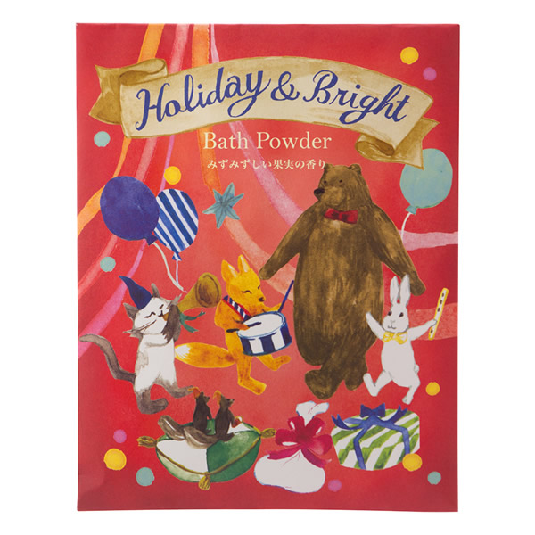 | 街のにぎわい、キャンドルの灯、バカンスにパーティー、贈りもの、エトセトラ。 誰もが待ち遠しいこの季節。 ホリデーシーズンを思い切り楽しんで過ごすためのバスパウダーをつくりました。 [レッド] 重曹ベースのバスパウダーに、天然果実由来のうるおい成分イチジク果実エキス、クランベリー果汁を加え仕上げました。 ベビーピンクの湯 みずみずしい果実の香り |
