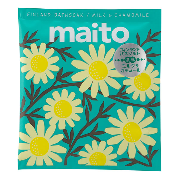 | 心地よい眠りのための濃厚ミルクバス。 おやすみ前に少し贅沢な時間を。 お湯に入れた瞬間、クリーミーな気泡湯が楽しめます。 「maito」はフィンランド語でミルクという意味です。 就寝前にホットミルクを飲むというフィンランドの風習「ナイトミルク」にならい、作りました。 [ミルク&カモミール] 乳白色のにごり湯 保湿成分:スキムミルク、カモミールエキス、乳酸桿菌・乳糖(牛乳) |