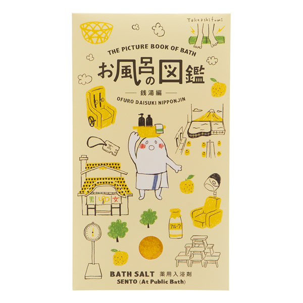 | お風呂にまつわる風景や道具などをイラストで紹介する、図鑑のようなバスソルト。 中の折り返し部分には、日本のお風呂文化やマナーなどを日本語と英語を交えて紹介しています。 [医薬部外品] 有効成分が温浴効果を高め、冷え症や疲労回復などに効果的です。 [効能・効果] 冷え症、疲労回復、肩のこり、腰痛、にきび、荒れ性、しっしん、あせも、うちみ、くじき、神経痛、リウマチ、ひび、あかぎれ、痔、しもやけ [銭湯編] ゆずの香り 黄色の湯 国産ユズ天然精油(香料)や、天然由来の月見草油(うるおい成分)配合 |