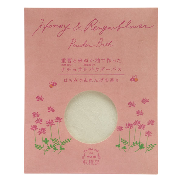 | 古来より天然由来の素材として人々の暮らしに取り入れられてきた 重曹(清浄成分)と米ぬか油(保湿成分)でナチュラルなパウダーバスを作りました。 木節夫香りと自然の恵みをお楽しみください。 ほのかなにごり湯が楽しめます。 合成界面活性剤、鉱物油、タール色素不使用 [はちみつ&れんげ] うるおい成分 ハチミツ、レンゲソウエキス配合で湯上りはさらさら素肌に。 |