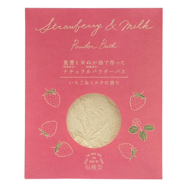 | 古来より天然由来の素材として人々の暮らしに取り入れられてきた 重曹(清浄成分)と米ぬか油(保湿成分)でナチュラルなパウダーバスを作りました。 木節夫香りと自然の恵みをお楽しみください。 ほのかなにごり湯が楽しめます。 合成界面活性剤、鉱物油、タール色素不使用 [いちご&ミルク] うるおい成分 キイチゴエキス、乳糖配合で湯上りはすべすべ素肌に。 |