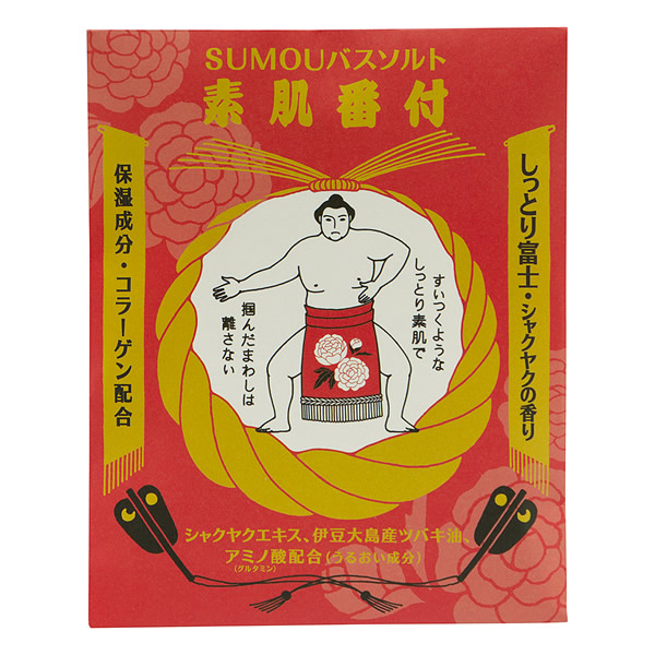 | うるおい成分として力士の髪結いに使われる椿油を配合したバスソルト。 温浴効果で素肌を健やかに。 [しっとり富士] すいつくようなしっとり素肌で 掴んだまわしは離さない シャクヤクの香り 保湿成分 コラーゲン、シャクヤクエキス、伊豆大島産ツバキ油、アミノ酸(グルタミン)配合 |