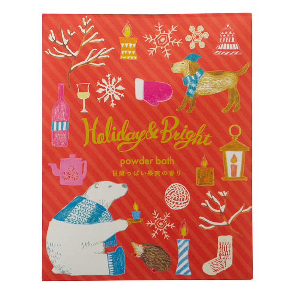 | 冬を楽しむ動物たちの賑やかパッケージのバスパウダー。 [レッド] 重曹ベースのパウダーバスに、天然果実由来のうるおい成分 イチジクエキス、クランベリー果汁を加えました。 甘酸っぱい果実の香り ベビーピンクの湯色 |