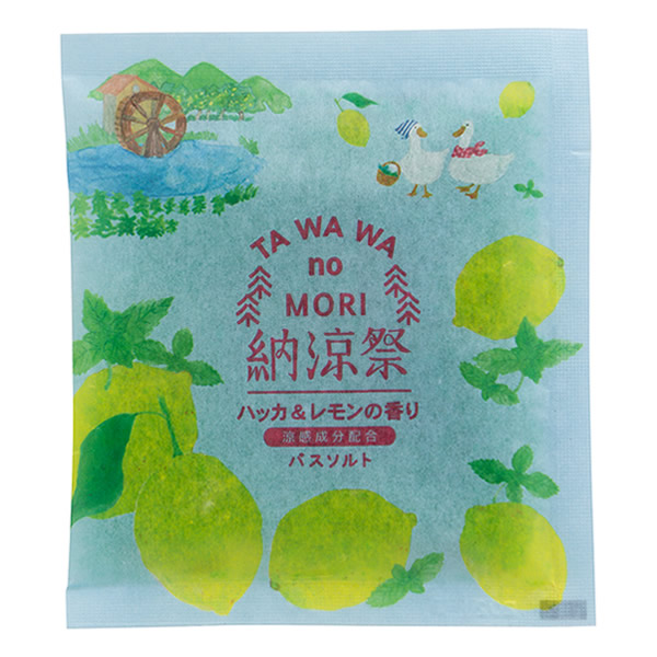 | 涼感成分(メントール)配合のバスソルト。 それぞれ2種のうるおい成分配合で湯上りはしっとり。 [ハッカ&レモンの香り] うるおい成分(ハッカ葉エキス、レモン果実エキス)配合ですべすべ素肌に 透き通ったハッカ色の湯 |