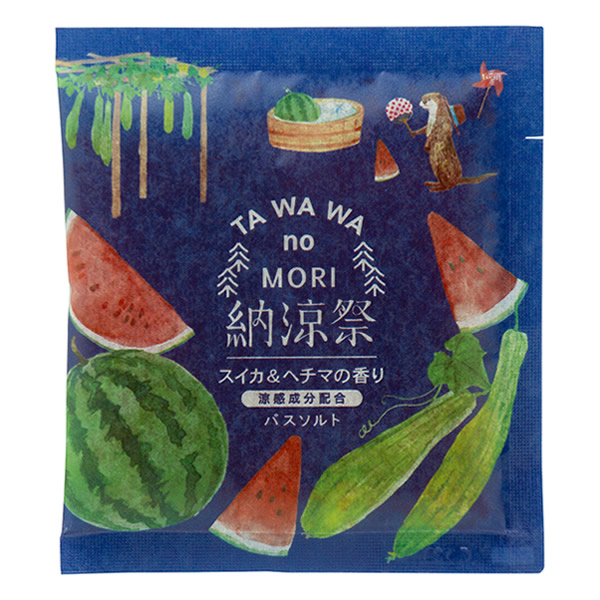| 涼感成分(メントール)配合のバスソルト。 それぞれ2種のうるおい成分配合で湯上りはしっとり。 [スイカ&ヘチマの香り] うるおい成分(ヘチマ果実エキス、スイカ果実エキス)配合で湯上がりさっぱり 透き通ったスイカ色の湯 |