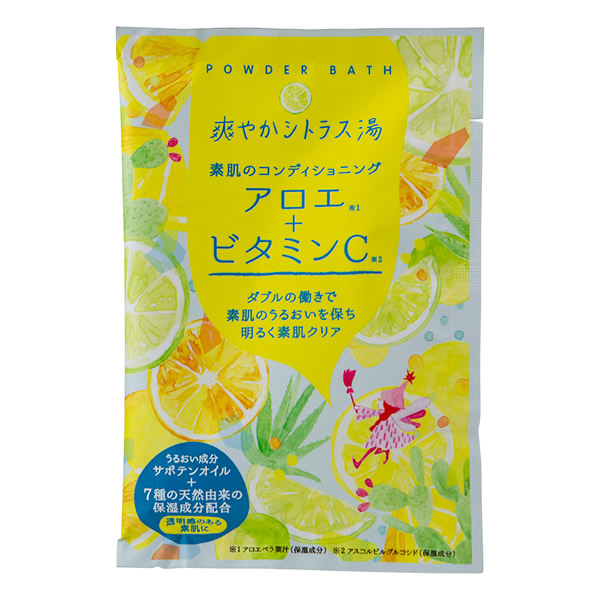| 手軽にスキンケアができるパウダーバス。 清浄成分や保湿成分のダブルの働きで、なりたい素肌に導きます。 うるおい成分ハーブエキスとフルーツエキス配合。 [アロエ+ビタミンC 爽やかシトラス湯] アロエ(アロエベラ葉汁)+ビタミンC(アスコルビルグルコシド)の働きで みずみずしく肌を整え、素肌のコンディションを整えます。 8種のうるおい成分配合 天然由来のオイル(ティーツリー油、レモングラス油、ウチワサボテンオイル※オプンチアフィクスイジカ種子油)と、4種のエキス(レモン果実、グレープフルーツ果実、ヨモギ葉、ハッカ葉)、ライム果汁配合 湯上りは透明感のある明るい素肌に。 シトラスシャボンの香り ブルーグリーンの湯色 |