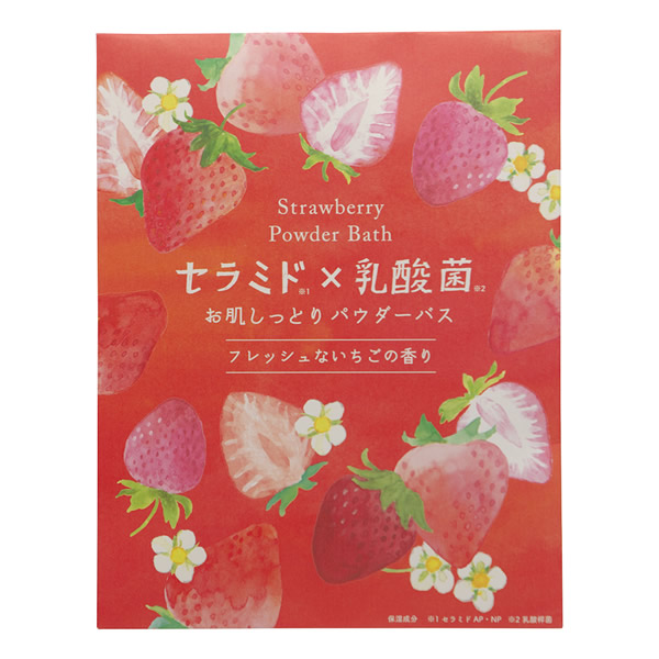 | お肌しっとり成分セラミドと乳酸菌、イチゴエキスを配合した重曹ベースのパウダーバス。 みずみずしいお肌に導きます。 ●香り:フレッシュないちごの香り ●湯色:ベビーピンクの湯色 |