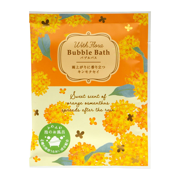 | ふわふわ泡が楽しめる粉末タイプの入浴剤。 美容うるおい成分配合でキメ細かいつやつや葉だへ。 美肌うるおい成分配合 シルクエキス・ヒアルロン欄・コラーゲン・モクセイ花エキス 雨上がりに香り立つキンモクセイの香り クリアオレンジの湯色 |