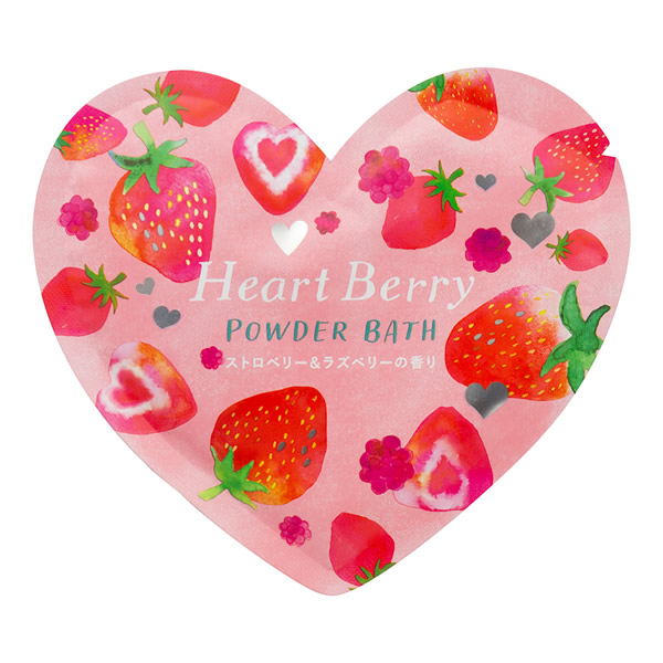 | ハート型のパッケージに入ったうるおい成分ハチミツエキス配合のパウダーバス。 甘酸っぱいベリーの香りが広がります。 [ストロベリー&ラズベリー] クリアピンクの湯色 |