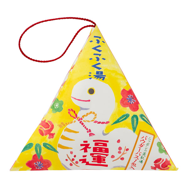 | 干支のデザインの縁起のよい入浴剤 [巳] 脱皮を繰り返し成長するヘビは「復活と再生」を連想させ、 不老長寿や生命力の象徴とされてきました。 |