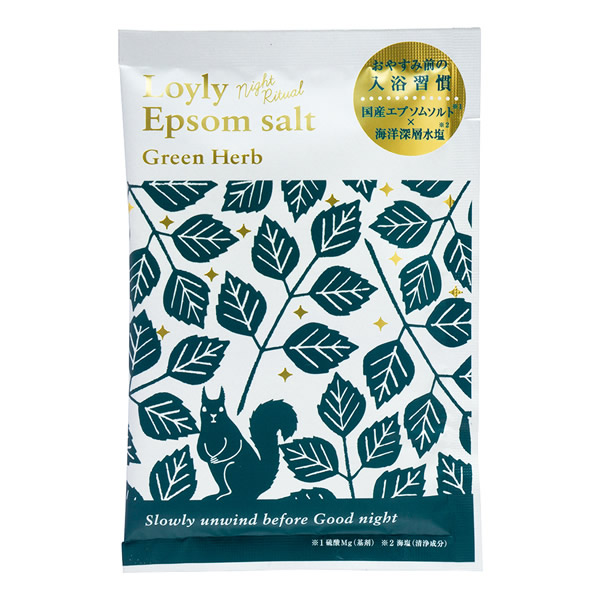 | 『国産エプソムソルト×海洋深層水塩』 ふたつのミネラル成分が肌を清浄にし、うるおいを与える入浴料。 [グリーンハーブ] 4つのボタニカル保湿成分でしっとりうるおい肌へと導きます。 ・フェンネル(ウイキョウ果実エキス) ・ユーカリ葉油 ・ローズマリー油 ・オーガニックホホバ種子油 ミルキーグリーンの湯色(にごりタイプ) |