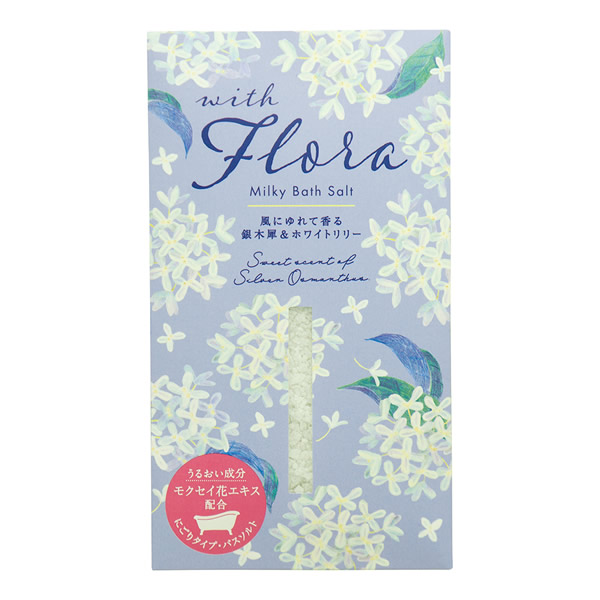 | 海塩に花エキスを加えたバスソルトで、湯上りはしっとりなめらか素肌に。 [銀木犀&ホワイトリリー] ほのかに甘く香る銀木犀に、すっきりしたホワイトリリーの香りをブレンド。 清々しく華やかな香りが広がります。 うるおい成分:モクセイ花エキス 配合 ミルキーホワイトの湯色 |