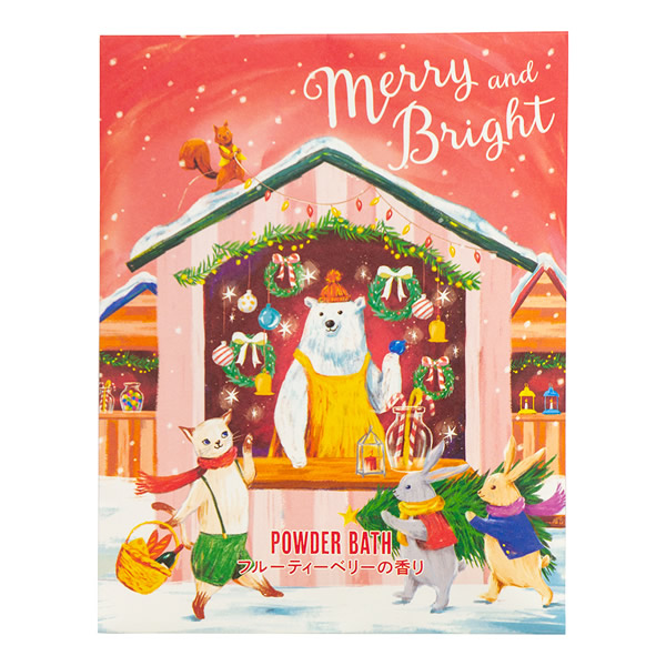 | クリスマスマーケットを楽しむ動物たちが描かれたパウダーバス。 うるおい成分配合で湯上がりはしっとりなめらか肌に。 [レッド(フルーティーベリーの香り)] クリアピンクの湯色 天然植物由来のうるおい成分 リンゴ果実エキス、ヨーロッパキイチゴ果実エキスを配合。 湯上がり後はしっとりなめらか肌に。 |