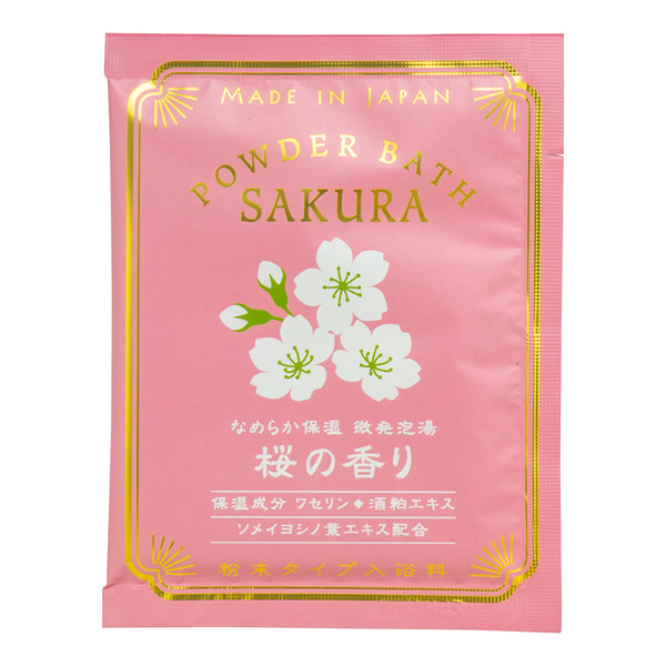 | 保湿成分ワセリン配合のパウダーバス。 お湯に入れるとふんわりクリーミーな気泡が広がります。 [桜の香り] 清らかな桜の香り ミルキーピンクの湯色(にごりタイプ) |