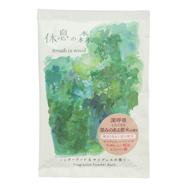 | 深呼吸したくなる香り成分ピネンを配合したパウダーバス。 森の香りに包まれるバスタイムを。 ※ピネンとは、森の中を歩いたときに感じる清々しい香りの主成分のこと。 松、ヒノキ、ヒバなどに多く含まれます。 [シダーウッド&サイプレス] 静寂に包まれる森の中。 穏やかに佇む木々のささやきに耳を澄まし、心がゆっくり満ちていくように。 自然の息吹を感じながら 深呼吸する安らぎのひとときを。 深呼吸したくなる深みのある樹木の香り ミルキーホワイトの湯色(にごりタイプ) 保水うるおい成分配合 サイプレス、ヒバ精油、ヒアルロン酸 しっとりなめらかな素肌へ導きます。 |