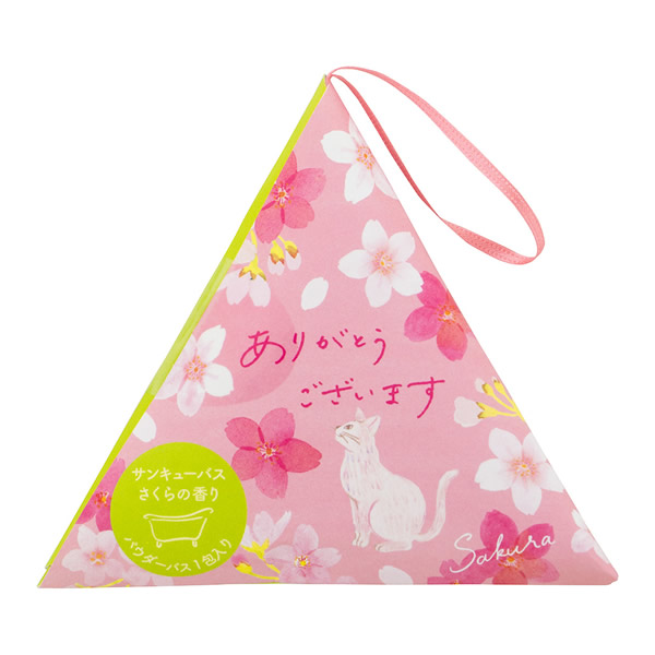 | ありがとうの気持ちを届けるパウダーバス。 パッケージの内側には、幸運にまつわる世界の豆知識が書かれています。 植物由来の保湿成分配合。 [ありがとうございます(さくらの香り)] クリアピンクの湯色 |