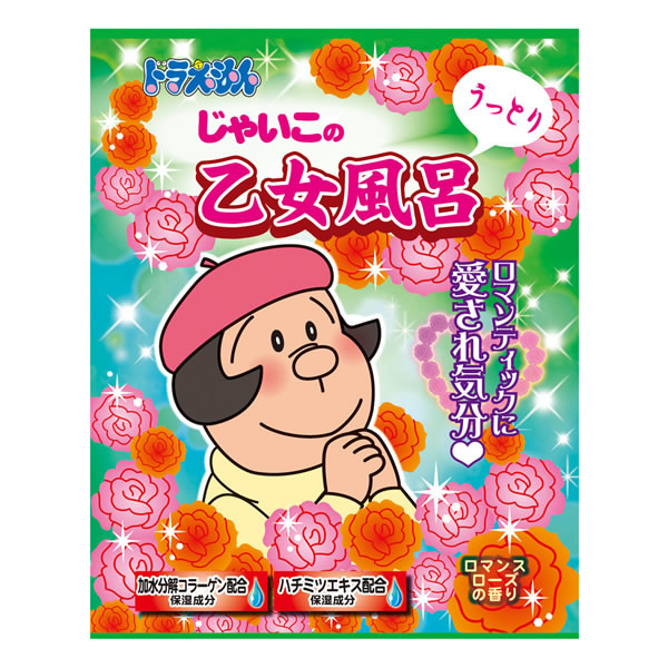 | 誰でも知ってるあのキャラクターたちのキャラ風呂シリーズ。 [じゃいこの乙女風呂] じゃいこが描く漫画の世界!? オトメチックな愛され美肌 加水分解コラーゲン・ハチミツエキス配合(保湿成分) クリアーピンクのお湯 可憐で清楚なロマンスローズの香り |