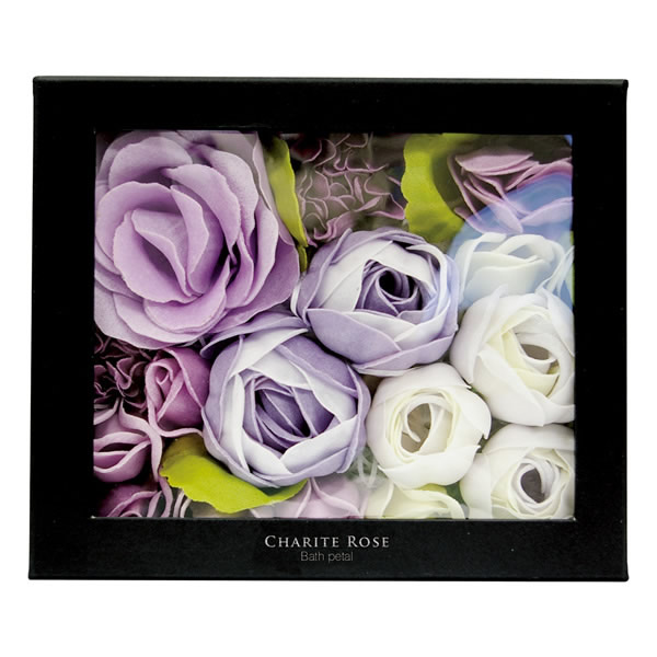 | 色鮮やかな花をかたどったバスペタルです。 多彩な色と、ローズをイメージした香りがバスタイムを華やかにします。 高級感のある黒箱に詰め込んだギフトとして最適なアイテムです。 [ロマンスローズ] しっとりとした妖艶な香り |