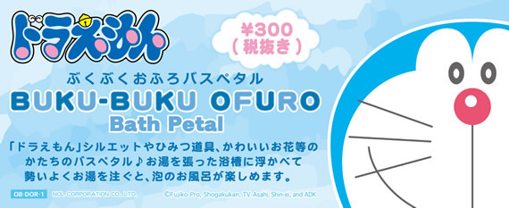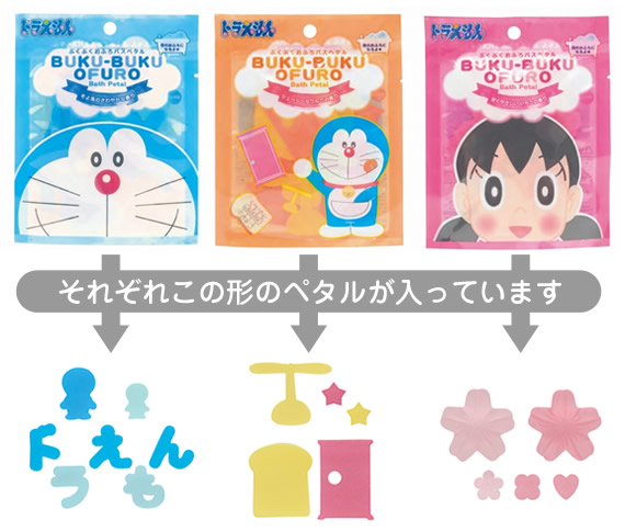 | ドラえもんバスアイテムにバスペタルが登場! ペタルはドラえもんシルエットやひみつ道具、かわいらしいお花などの形で遊びゴコロたっぷり♪ お湯を張った浴槽に浮かべて勢いよくお湯を注ぐと、泡のお風呂が楽しめます。 [ドラえもん] そよ風のさわやかな香り |