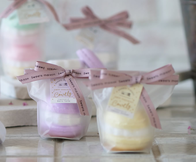 | スウィーツメゾンの定番バスフィズが、うれしい保湿成分入りになって新登場! 可愛らしいカラーリングとスウィートな香りはそのままに、 スモーキーピンクのロゴ入りリボンで、さらに大人かわいい印象に。 写真映えも間違いなしのまるで本物のマカロンのような可愛い入浴料。 お世話になった先輩や友人などへのちょっとしたお礼や、パーティなどでのお配り用など、プチギフトにおすすめです。 [ピーチピューレ] とろけるようなピーチピューレの香り |