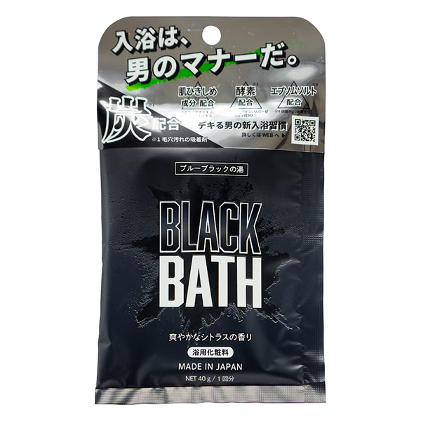| シャワーだけでは落とし切れていない嫌な“ニオイ”や“ベタつき”の原因となる 身体の隅々に残った皮脂や汗をスッキリ流し、湯上がり後も快適な肌に! 爽やかなシトラスの香り ブルーブラックの湯 |
