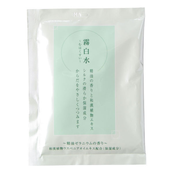 | スキンケア成分でお肌にうるおいを。 湯上がりはしっとりとしたお肌を保ちます。 [霧白色] 霧のように深い白色(濁色)、霧白色。 精油ゼラニウム(葵)の香り、シルクと天然保湿成分を配合しました。 お湯にやさしく包まれる贅沢な時間をお楽しみください。 シルク末・和漢植物ウスベニアオイエキス配合(保湿成分) |
