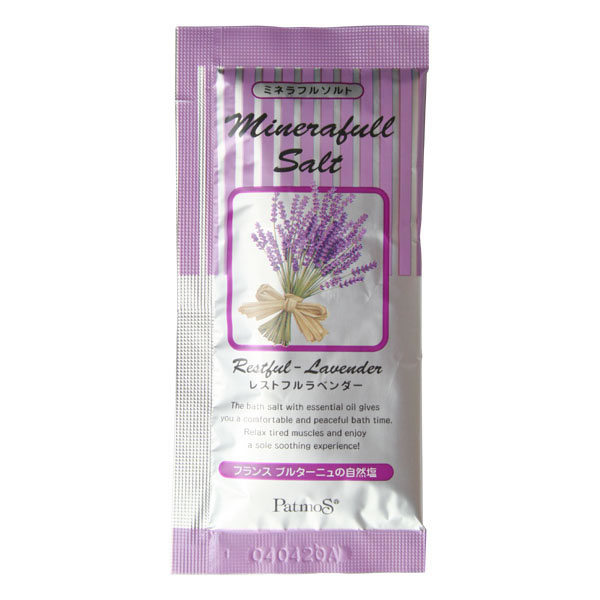 | ■販売元/ジーピークリエイツ ■ブランド/パトモス Patmos ■内容量/25g ■成分/海塩、水、シリカ、ラベンダー油、香料、青1、赤106 ■原産国/日本 |