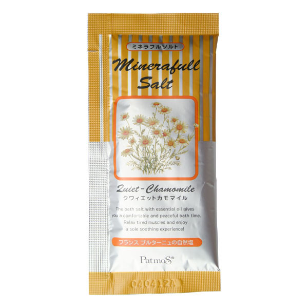 | ■販売元/ジーピークリエイツ ■ブランド/パトモス Patmos ■内容量/25g ■成分/海塩、水、シリカ、カミツレ花エキス、エタノール、香料、黄4、黄5 ■原産国/日本 |