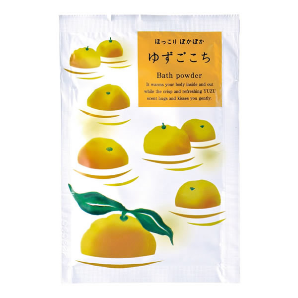 | ゆずの甘酸っぱい香りがお風呂いっぱいに広がり、 ミルキーイエローのお湯が楽しめるバスパウダーです。 温浴効果で身体を芯からあっためて、湯上り後もポカポカに・・・。 |