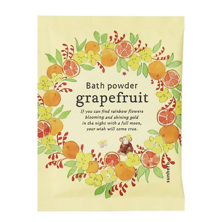 | やさしい香りがお風呂に広がる粉状の入浴剤。 白濁するミルキータイプの入浴剤。 〜好きな香りがいつもそばにある暮らし〜 小道に咲く花や森で見つけた果実を摘み、うるわしい香りをぎゅっと閉じ込めました。 [グレープフルーツ] シャキっとまぶしい、グレープフルーツの香り |