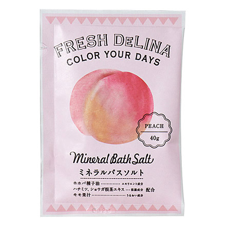 | ミネラルたっぷり海塩とショウガ根茎エキス(保湿成分)、ホホバ種子油(エモリエント成分)、 ハチミツ(保湿成分)、果汁または果実エキス(うるおい成分)配合。 じっくりとあたたまって汗をかきたい半身浴におすすめです。 [ピーチ] みずみずしいピーチの香りとほんのりピンクの湯色 |