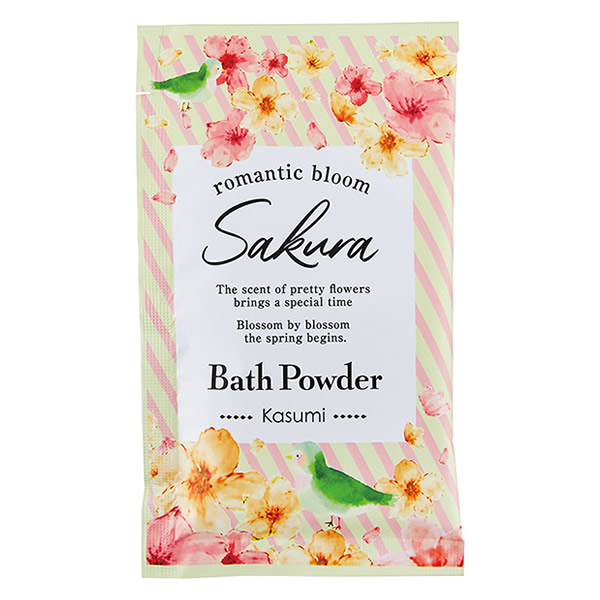 | さらっとお湯に溶けるパウダータイプの入浴剤。桜の香りが浴室にふんわり広がります。 [カスミザクラ] ピンク色に降りしきるカスミ桜をイメージした可憐でやさしい香り |