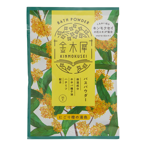 | 一瞬で魅了される花の香りのバスパウダー。 [金木犀(キンモクセイ)] 金木犀を思わせる橙色の湯が楽しい、やさしい湯ざわりで包まれるパウダータイプの入浴料。 湯色:にごり橙色 保湿成分:モクセイ花エキス、ホホバ種子油、ハチミツ |