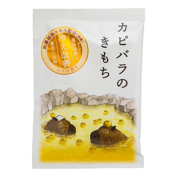 | 有効成分配合の温浴効果で、たまった疲れや冷え症などのお悩み解決! 肌をうるおす和漢植物エキス配合(保湿)のにごり湯があったかきもちぃ〜薬用入浴剤。 [効果・効能] 疲労回復、冷え症、肩のこり、荒れ性、しっしん、神経痛、しもやけ、あかぎれ、ひび、産前産後の冷え症、あせも、にきび、腰痛、うちみ、くじき、リウマチ、痔 [カピバラのきもち] ユズの香り |