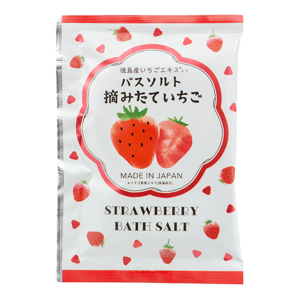 | 甘いいちごの香りと湯色が楽しい、ゆったり至福のバスタイムが楽しめる国産バスソルト。 [摘みたていちご] あまずっぱいいちごの香り |