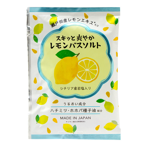 | シチリア産岩塩が入った、ちょっと贅沢なバスソルト。 保湿成分の瀬戸田産レモンエキス(レモン果汁)、ハチミツ、ホホバ種子油配合。 |