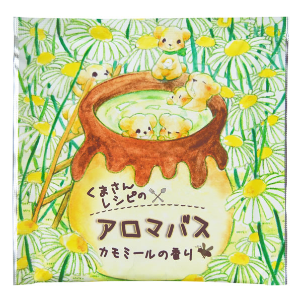 | はちみつやローヤルゼリーのうるおい成分を配合。 うるおい成分が溶け込んだやわらかいお湯のお風呂に入れば、 全身をパックしたみたいにうるぷる肌に。 ミルキー色の優しいお湯の色と、ホッとするような香りにつつまれて、 一日の疲れをリセットしてみては。 くまさんがハチミツを運んだり、お昼寝をしていたり。 物語をイメージさせるような、可愛らしいパッケージデザインです。 [カモミールの香り] 心地よいカモミールの香り ミルキーグリーンの香り |