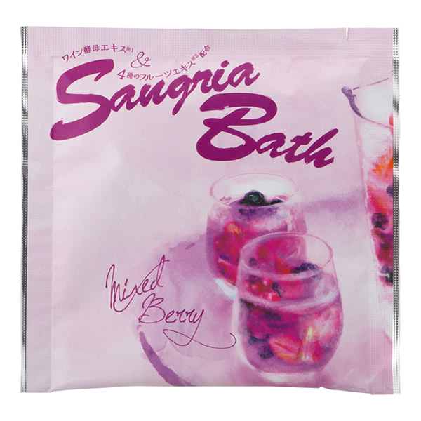 | 疲れたときについつい食べたくなる甘いスイーツのように。 サングリアのような甘くみずみずしいフルーツの香りに包まれて・・・ うっとり贅沢なバスタイム。 贅沢つや肌保湿成分配合 ワイン酵母エキス・4種のフルーツエキス※・ヒアルロン酸・コラーゲン ※オレンジ果実エキス、グレープフルーツ果実エキス、リンゴ果実エキス、レモン果実エキス 配合 [ミックスベリー] クリアレッドのお湯色 |
