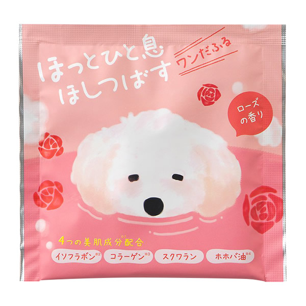 | お風呂に入ってほっとひと息。 美肌成分が溶け込んだお湯に浸かって ゆったりほんわか癒しのバスタイム。 4つの美肌成分配合 ホホバ油 : なめらか肌成分 イソフラボン : しっとり保湿成分 スクワラン : やわらか肌成分 コラーゲン : ハリつや成分 |