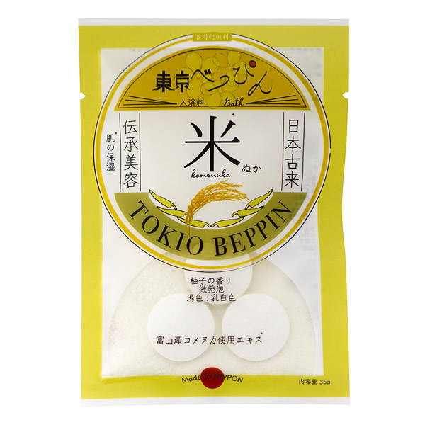 | ●産地限定にこだわった日本古来の成分が肌を優しく潤わせます。 ●酵素(=パパイン、プロメライン、リパーゼ)のチカラでお肌を清浄にします。 ●炭酸イオン(炭酸水素ナトリウム、セスキ炭酸ナトリウム、炭酸ナトリウム)は、皮膚汚れを乳化し、汚れを落とすことでお肌を清浄にします。 ●美肌成分として多種の植物エキスを贅沢に使用、お肌を優しく整えます。 発泡成分のタブレットと美肌成分のパウダーは それぞれ別々に仕上げ、一袋ずつ手充填で仕上げています。 [米] 富山産コメヌカエキス、兵庫産ヨモギエキス、徳島産ユズ果汁 配合 柚子の香り 微発泡 湯色:乳白色 |
